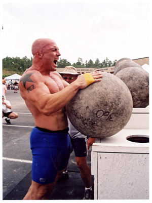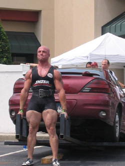 During my first year of competing (2003) I competed in quite a few NAS events and ended up doing quite well for a newbie. During my second year I won my pro card by placing first at the Azalea Festival competing against a great field of light weights including Wessels, Nowack, Mazza, and Lambousis. I ended 2004 by placing a respectable fourth at the Pro Strongman National Championships.