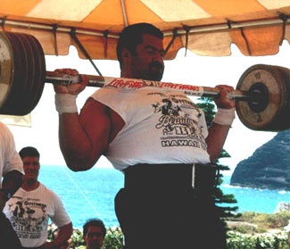 I started with Bodybuilding, and did the Bavarian Sport Stonelifting, and then I tried Powerlifting. I won the German juniors in 1989, 1991 which was my first Strongman contest called "the strongest man of Bavaria". I only wanted to watch but the organizer forced me to compete and I came in 3rd place. In 1994, my 4th strongman contest, I met Manfred Höberl and he invited me to come to a qualifier for Europe's strongest man. In Europe 's strongest man, only the best guys can compete in that contest, so I competed and won the German qualifier and I came in 4th place in Europe 's world's strongest man competition. Then one contest followed the other, till today.