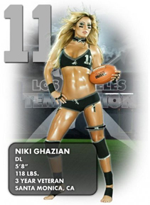Niki Ghazian: My second favorite LFL team after LA Temptation is the Miami Caliente. They are the nicest girls that I am the friendliest with outside of my own. Plus their uniform colors are rockin'. I would say LA is the best in the Western division and Miami is the best in the Eastern division.
