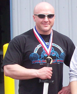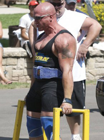 At Summer Fest on July 4th 2008 the legendary Bill Kazmaier was on the microphone that day. This was an "open" contest with no weight classes, so a lot of the guys were much bigger than me. On the car dead lift event, most guys that went before got either single digits, or no reps at all. My training partner got 15, and a big heavyweight that weighed about 290 lbs got 19 reps. As I went through my reps, the crowd started really screaming after about 10. Bill Kazmaier was really getting the crowd of 2,000 people behind me. As I pulled the 15th rep, the crowd was really going nuts. The pressure on my body was so intense that I was blinded as I pulled each rep. I could hear the crowd, but couldn't see anything. After 18 reps, my whole body was burning, and I had to stop. Bill Kazmaier said on the microphone "Are we gonna see 20 out of this guy?". I said to myself "Oh crap, I have to keep pulling". I pulled 2 more slow and painful reps for a total of 20, and received a standing ovation. I collapsed for almost a minute, then hobbled to my chair with a full-blown migraine. Bill Kazmaier walked up to me and said "Paul, that was awesome! You are the man, and you can tell everyone I said it!"