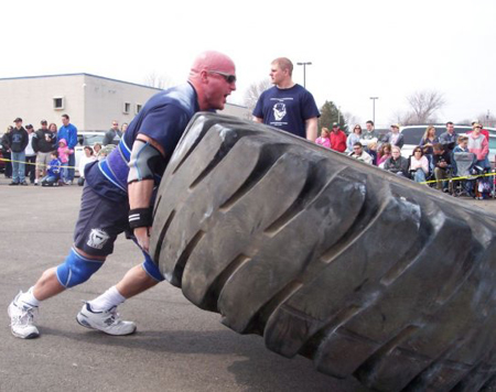 Most hardcore? Well, I competed at Milwaukee's Strongest Man in September of 2008. After the contest was supposedly over, I had a migraine from the last event and the promoter announced one more "surprise" event. I went to the nearest trash can, threw up, and finished the contest.