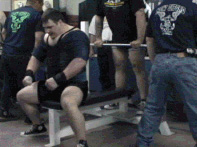 Once we are warm we will either do a volume day or a shirted day. One heavy day might be a heavy triple, double and single. (Last week I did 750 for 3, 760 for 2, and 805 for 1). Our volume day is for technique and to keep our CNS in check. Volume day may consist of 5 sets of 2 with one weight usually 90% or so of our shirted work. This workout is to master touching with lighter weights and to perfect our groove. After shirt work we will hit high boards, usually a 5 board, here the goal for me is to hit around 90% of my shirt work off a raw 5 board for triples. Once the board work is done we will do raw reps. usually for me it may be a few sets of 10-12 with 405 or something to that effect. Our shirt cycles last 7 weeks, any longer and we feel beat up; in between those cycles we do mini raw cycles of 3-4 weeks or so. Here we will do a lot of raw work, and special exercises (west side type movements). As you see training is very simple, No need to complicate things. As far as diet, I don't really have one. I get all my supplements form don mullrany at insane nutrition and I just take what he sends me, (a very power lifter friendly company). I just try to stay below 275 and not become too much of a slob. The only tip I have is stick with a routine and be experimental. There are no secrets, just buckle down and spend your time in the gym, and the PR's will come. Just have to put into what you want out of it.