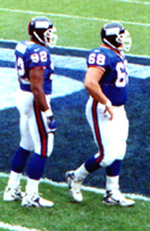 Kono and Michael Strahan Kono: The NFL was an amazing experience for me. It was cut short by an injury but I learned a whole hell of a lot. It was amazing being on the same field as some of the best in the world. College was fun but when you're playing for a living it's a business and there is a lot of pressure. College level I was the best on the field at the NFL I was average and learning. A tough combination!