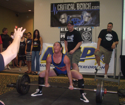 When I met my boyfriend Mike Schwanke he introduced me to a whole other world of competition. I attended my first powerlifting meet and pretty much fell in love with the sport. I started training at Tampa Barbell with Mike and about fifteen other helpful and motivating guys. Tommy Fannon was nice enough to let me train at his gym. In October 2008 I did my first meet. I did really well and hit 8 out of my 9 lifts and had a lot of fun. Since the first meet I have competed in a total of 5 meets. I did well in all of my meets and they were a lot of fun and I very much enjoy them whether competing or watching others do well. Too bad there are not more meets in my area!