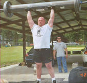 Tim Nagy: My best event by far is the log, 320lbs log for 5, 300lb log for 7. I am doing strict standing log military presses for 7 after a torn rear rotator. My silver dollar deadlift is also pretty good, 1040lbs.