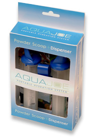 The AquaJoe scoop/holder/dispenser allows the athlete to quickly and easily turn water into the sports drink of their choice. No more carrying plastic baggies of powder or making paper cones. No more spilled powder. It even works with bottled water! The modular design allows an unlimited number of AquaJoe's to be snapped together giving an almost unlimited capacity.