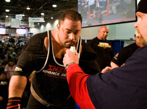 A great way to visualize and understand the posture I'm describing is to look at someone wearing a "bench shirt" during a powerlifting meet. These shirts- made of super-tough materials and worn so tight they often require 1-2 helpers to put it on, "oppose" the action of the pectoralis major as you lower the bar to your chest. This is why, when standing relaxed, the wearer is pulled into an exaggerated version of the posture I've described to the right: