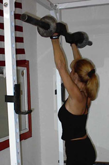 You see, when you do a normal barbell shoulder press, as you push the barbell up, you go through what is called a strength curve. In basic terms, it means at the bottom of the movement you are fairly strong. But as you press further (normally about 3 to 5 inches up in the movement) you hit a point where the leverage in your shoulders changes. The exercise gets a lot tougher.