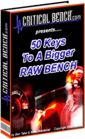 Most people when they go to increase their bench they work their chest three times a week figuring more work will mean more gains. There is more to the bench than just the chest. You also have to work the other muscles involved in the bench press. Determine your sticking point whether it be the bottom, middle or top and train to overcome the plateau. If you want to increase your one rep max and become a better bench presser download this free ebook compliments of our friends at Critical Bench entitled,