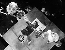 It is always helpful to visualize yourself pushing the bar right through the top of the movement. Never get caught up in the moment during the bench or think about the position that the bar is at. What you need to do is "see" the top. Don't let the bar stop moving until it reaches the top. If you have ever raced or are a runner you know that you don't slow down as you approach the finish line.