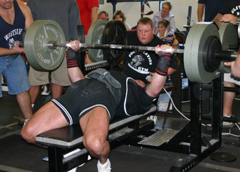 While the bar is sitting in the hole, there comes a time where your body just lets go a bit, especially when you are fatigued on the second and third reps. This is not to say you loosen up or relax. It is a feeling I really cannot describe, but once you have felt it, you will remember it. One of my other training partners, Robert "Tee Tee" McRay, used to get hung up with weight about halfway down. It drove me absolutely insane. I would scream at him like a raving lunatic workout after workout. Well, he stuck with it and got it after many months of hard work. Now he can touch very light weights in his shirt. He just won the APF Senior Nationals SHW bench and went three for three. I kind of know what I am talking about.