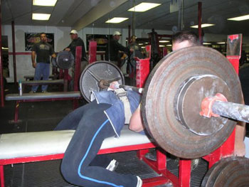 I have been training like the above for several months now and I worked hard and was all prepared to kick ass at my first meet. The venue was set, the USPF ECC Challenge, which was on May 17th of 2003. I didn't have to go far because it was being held just a few blocks down the road. Right in my back yard. With the weights I pushed in the gym, we all had our sites on me breaking the 148 NY State open Bench Press record- which was 250.