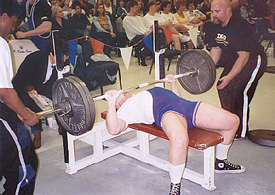 Not touching with your bench shirt on and then trying to touch at a meet will lead to many bomb outs. One easy way to cure this is to stick with a lighter weight that you can easily handle for six to eight reps in a bench shirt. Keep trying to make the weight touch using body manipulation, better set ups and shoulder blade retraction. Also, pushing the stomach up into the shirt is very important. A few sets each workout trying to touch submaximal weights will make touching heavier weights much easier. Don't just say "I can't touch", and proceed to a heavier weight and not touch again. It is during training where these skills are mastered, not on the platform.