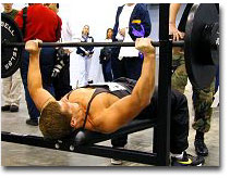 8) Pick the right foam, Jerome: If you use a bench that reminds you of your grandmother's 50-year-old sofa, it's too soft. You'll lose energy while stabilizing the movement of the shoulders. I prefer a harder bench to a softer bench. Think of the mechanics of action-reaction: the harder the surface, the greater the "rebound;" the softer the surface, the greater the dissipation. A really soft bench (as used in most commercial applications) may cost you 5-10% off of your 1RM.