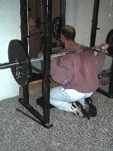 These are like regular good mornings, but use a very wide stance. Now lean, don't bend, go down forward slowly and then explode up. Heavy weights can be employed. This is not a quarter-squat. Remember, the bar must be in front of the knees after leaning forward.