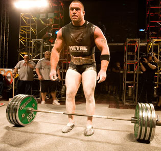 First, if you're doing this exercise off the floor, load a barbell with a 45-lb plate on either end. To lift this amount of weight, you should be able to deadlift at least 250 to 275 lbs in a normal deadlift.