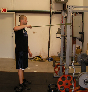 This builds up the muscles in the rotator cuff and is a good way to warm up and prevent injury.