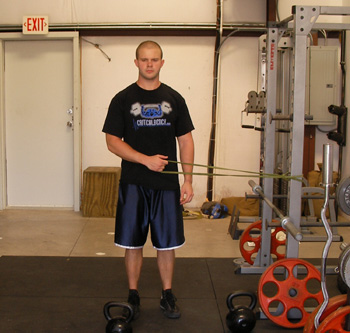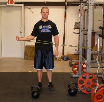This builds up the muscles in the rotator cuff and is a good way to warm up and prevent injury.