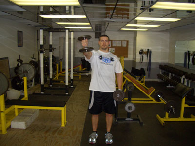 should be raised to shoulder height. While exhaling slowly lower the weight. Alternate arms. Important Note:
