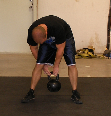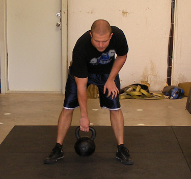 Grab a kettlebell by the handle with your feet shoulder width apart and with a slight bend in the knees. Swing the kettlebell between your legs and reach with your opposite hand behind your leg and grab and swing it from behind to around in front and through the legs again. This exercise is great for grapplers. It stresses the forearms and fingers in every direction and increases overall hand strength.