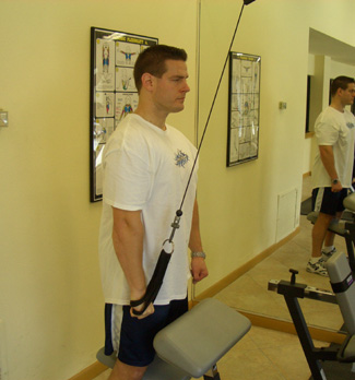 Tips: Make sure to keep your elbow at your side at all times in order to keep the tension on your tricep at all times. Also make sure to use a full range of motion by bringing the handle as high as it will go and locking your elbow out at the bottom.