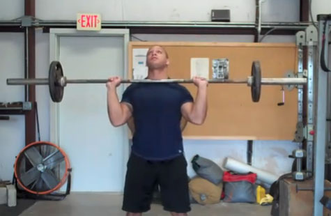 Next, dip your body slightly by bending your knees and hips just a bit. Explode upwards driving the barbell up off your shoulders over your head. Your arms should be almost fully extended. Pause for a one count, carefully lower the barbell to your chest and repeat.