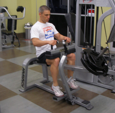 Tip: Make sure to use only your calves during this exercise. Avoid rocking your body and using momentum to lift the weight. It may also be helpful to use a spotter during this exercise in order to help you place the weight stopper back in place as soon as you reach failure.