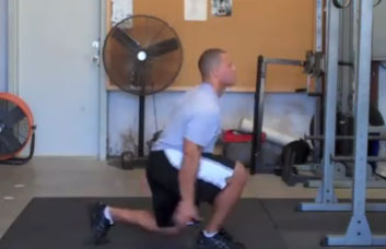 To begin this exercise position yourself in a lunge stance with one foot out behind you and one out in front of you.