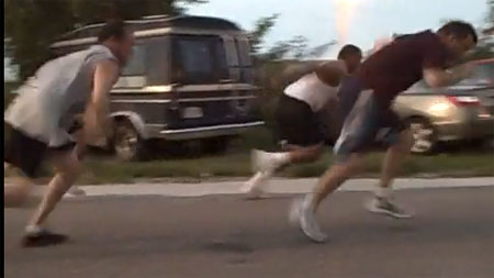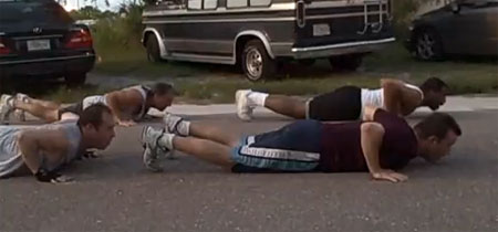 Pause for a moment and then launch your body upwards, exploding into a rapid sprint, continuing for about 50 yards. Repeat.