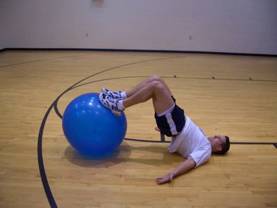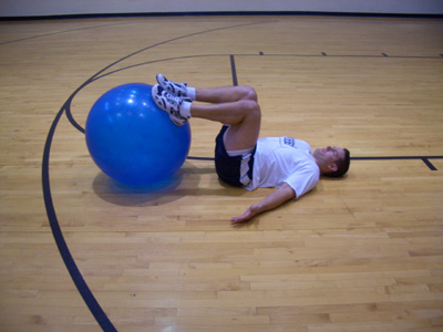 In a supine position on the floor place the stability ball as far from your hips as possible with only