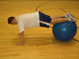 Get in pushup position, then rest the tops of your feet on a Swiss ball [1]. Keeping your legs as straight as possible, bend your hips and try to pull your feet toward your chest so that the ball rolls forward [2]. Hold at the top for three to four seconds, then slowly roll back to the starting position. Continue rolling the ball backward (letting it move up your legs) until your body forms a straight line about 30 degrees to the floor [3]. That's one rep. Perform two to three sets of 10 repetitions, resting 45-60 seconds between each set. Save this exercise for the end of your workout.