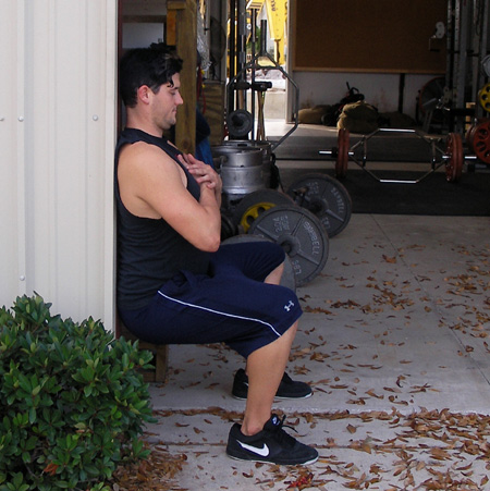 This is a great way to increase endurance in your lower body. Find a wall that gives you enough room to lean against with a floor where your feet have a good grip to. Start about 2 feet away from the wall facing away. Slowly lean back so that your back is flat along the wall. Slide your body down until your knees are at a 90-degree angle and hold there. Start off holding for 1 minute in the perfect 'chair-like' position. Increase your endurance by adding minutes each time you perform this exercise.