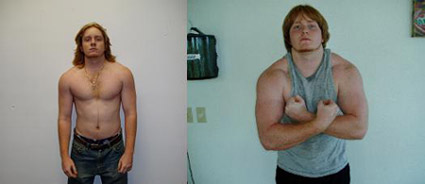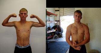 "Before meeting Elliott my parents spent hundreds of dollars on so called muscle building supplements and personal trainers trying for me to gain weight but none of them provided me with the results he has. While using his weight training methods my bodyweight went from 194 to 231, my squat has gone up to 560 pounds, I benched 335 and set the school record in the hang clean at 315 pounds."
