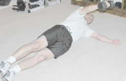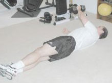 1. No lower back stress. Since you're lying flat on your back with your legs straight, it puts zero pressure on the lower back. There is some cross-tension in the back due to the opposing movements of the arms, however. The body position of this exercise also eliminates much of the blood pressure problem that occurs with the standard bent-over exercise (this exercise does require some abdominal stabilization, which will have an effect on blood pressure - no more so than any other exercise, however).