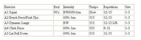Intensity: This is the amount of workload or how hard you are going to work. BW indicates bodyweight. You will find out what intensity you should use with regard to the amount of weight by the repetition number. If you see -2 then this means stop two reps before your maximum effort.