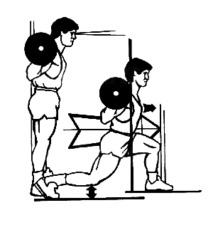 Now step your left leg forward into a typical lunge position stance. Go down into the lunge with the barbell resting on the back of your right thigh (your back leg, basically).