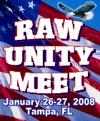 I am not sure if you know who I am. I am a sponsored powerlifter with Elitefts.com. I was just featured on page 36 of the August 2007 issue of Powerlifting USA in a full page ad for Elitefts.com. I am putting together a true "National" raw meet where I am inviting the top 10 raw lifters (regardless of federation) as kept by Jon at http://www.powerliftingwatch.com. I am also accepting applications from any interested lifters and granting invitations on a fairly strict basis. It has been dubbed the "Raw Unity Meet" and it will take place in Tampa, Florida, on January 26-27, 2008.