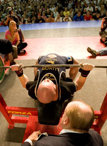 Finally, pushups of all varieties will always remain among my top chest builders. My favorites are weighted blast-strap (blast straps are available at www.EliteFTS.com pushups with the straps set about five feet apart from each other. The function of the pecs is to draw the arms across the midline of the body. By setting the straps far apart from each other, you make the pecs function in this way as you press/pull yourself back up from the bottom position. You have to do it and feel it to appreciate what I’m talking about, but I don’t think you will find a better chest exercise than this. If, like Frank Rizzo of the Jerky Boys, you have a chest like a wet blanket, then I highly recommend you give this exercise a try.