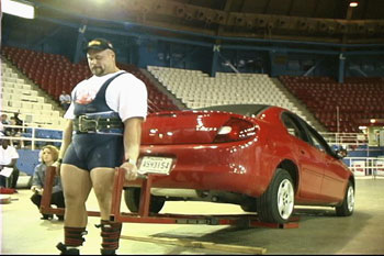 In an amateur strongman contest if you're one of the strongest, you will have to perform the events the fastest. If you are a rookie, just completing the events can be very challenging. However, the pride the sport gives you will last a lifetime. I will never forget the strongman contest that I entered. I was pulling trucks, pressing heavy 1-arm dumbbells over my head, putting kegs into trucks to name a few events. The day was quite grueling, but I feel that no matter how you do, you're a winner just for participating. The contest really shows what one is made of! So, heart is one thing, but if you want to win, you should train like a strongman. Here is a routine for strongman training: