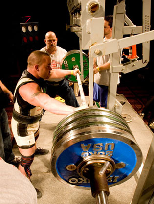 "Dave" put 315 pounds on the bar right away. I watched him wrap his knees and cinch his lifting belt so tight he looked like a toothpaste tube that had been squeezed in the middle.