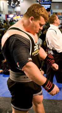 "Dave" put 315 pounds on the bar right away. I watched him wrap his knees and cinch his lifting belt so tight he looked like a toothpaste tube that had been squeezed in the middle.