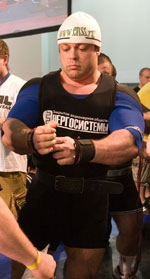 He made his spotter do one more rep after that one, dropping only an inch on the last rep. Two more sets just like that followed.