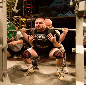 Disgusted, I unloaded the bar, set the safety rails on the nearest rack to just below lockout position, put 10 plates on either side then proceeded to bend the ever-lovin' CR@P out of that bar with the lockout partial squats from example #1 in this article...