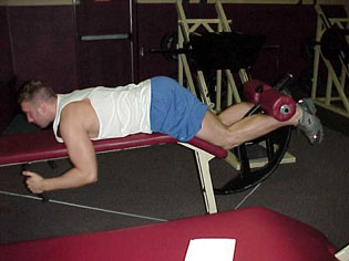 This body position trick maximizes the contracted position of the exercise. It is best done on a leg curl machine with an angled bench. First, move the ankle pad(s) up a few notches higher than you would normally have them (I like to move it as high up as possible - the change in body position requires this). Use a lighter weight for this exercise (about half of what you would normally use the first time you try it).
