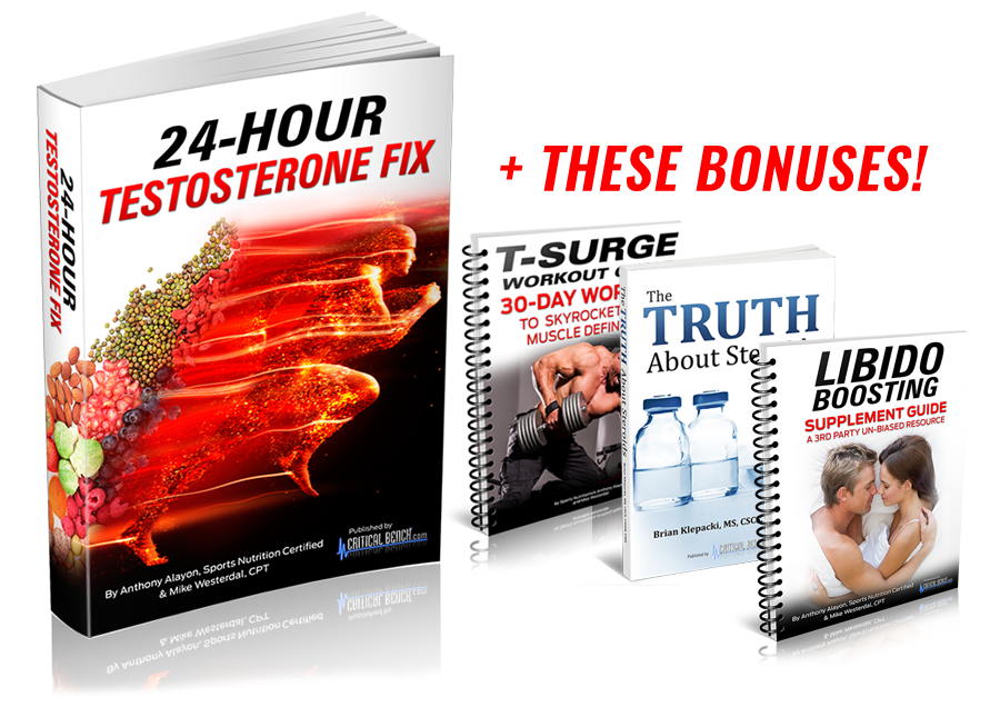 To summarize that’s The 24-Hour Testosterone Fix program (value $47), T Boosting Workouts (value $27) The Truth About Steroids (value $17), and our Libido Boosting Supplement Guide (value $19) with a combined total value of $110. But today you can secure your copy for just $17.