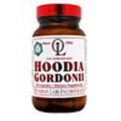 Hoodia Gordonii (Asclepiadaceae) looks like a cactus, but is actually a milkweed-like plant that grows in Botswana and the Kalahari Desert in Southwestern Africa. It was just introduced to the US market in early 2004.