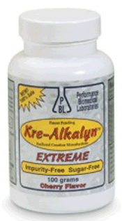 Kre-Alkalyn is "buffered creatine" that does not convert into creatinine prior to reaching skeletal muscle tissue. Kre-Alkalyn is a nutritional supplement that comes in powder form. It is packaged in a purple caplet that can be administered orally.