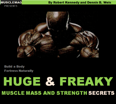 From beginning to end the NO NONSENSE muscle wisdom exploding off the pages of Huge & Freaky Muscle Mass And Strength Secrets! Produces MORE Than Promises...! Beginners up to advanced Bodybuilders will experience a personal satisfaction of Rapid, Dramatic and LASTING Results in the acquisition of unthinkable new muscle mass & brute strength. Remember the authors of HUGE & FREAKY MUSCLE MASS & STRENGTH SECRETS! Weis & Kennedy, are here to help you every step of the way.