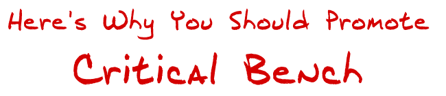 You can place our banners on a highly-trafficked website or you can use Pay Per Click Engines like Google Adwords to promote Critical Bench. You can use article marketing and put your affiliate link in the resource box or you can send out a promo to your email list.